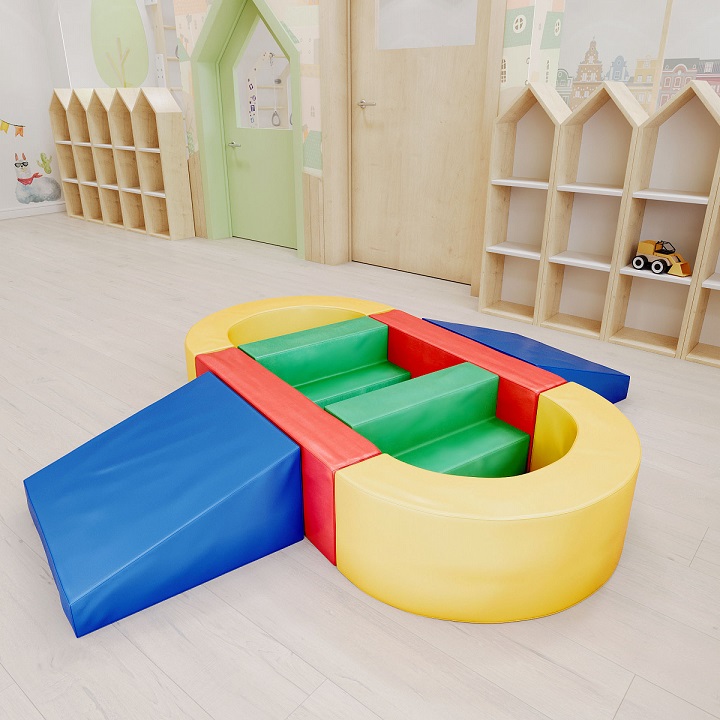 Мягкий комплекс станет незаменимым игровым аксессуаром для детей дома, в развивающих центрах и в детски садах. Изделия очень качественные и выполнены из упругого поролона. Модули деталей мягкие и в них нет острых углов, что говорит о полной безопасности для ребенка. Выполненные из винилискожи поверхности подвергаются аккуратной чистке и даже влажной чистке. Яркие цвета радуют глаз и для ребенка представляют еще больший интерес. Ребенок с помощью огромных составляющих мягкого игрового комплекса запросто выполнит любую фигуру. Изделия можно применять как предметы мебели в комнате ребенка.