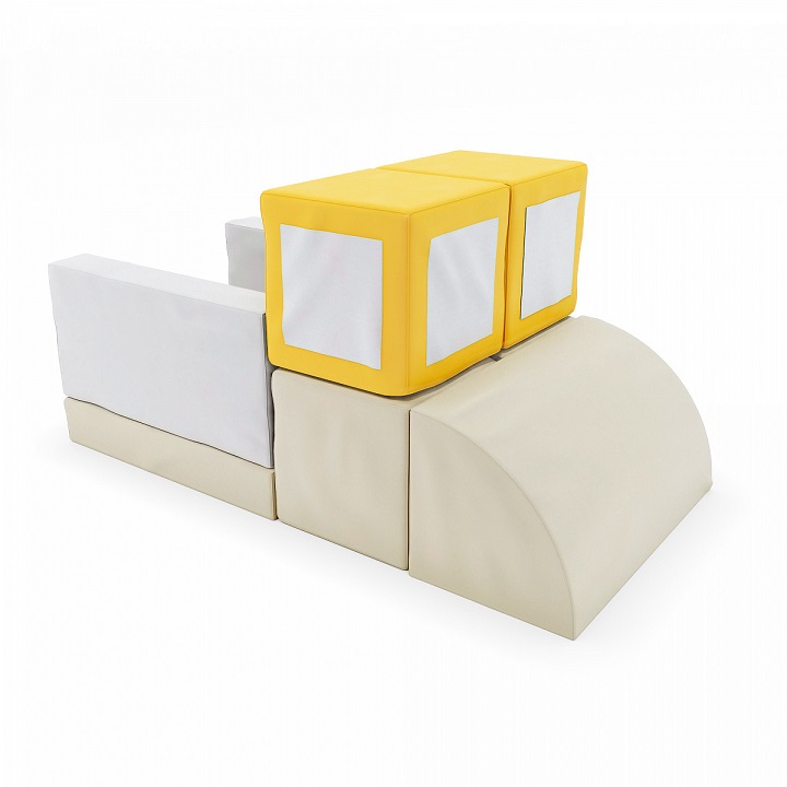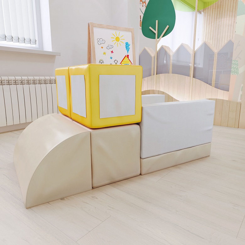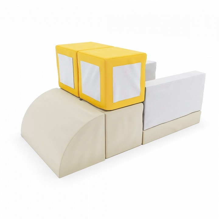 Мягкий комплекс станет незаменимым игровым аксессуаром для детей дома, в развивающих центрах и в детски садах. Изделия очень качественные и выполнены из упругого поролона. Модули деталей мягкие и в них нет острых углов, что говорит о полной безопасности для ребенка. Выполненные из винилискожи поверхности подвергаются аккуратной чистке и даже влажной чистке. Яркие цвета радуют глаз и для ребенка представляют еще больший интерес. Ребенок с помощью огромных составляющих мягкого игрового комплекса запросто выполнит любую фигуру. Изделия можно применять как предметы мебели в комнате ребенка.