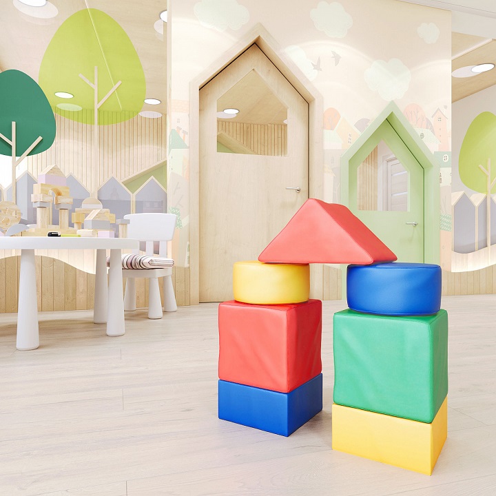 Объемные фигуры смогут заменить некоторые элементы мебели. Сюжетно-ролевые игры станут настоящим эксклюзивом в организации детского активного отдыха. С помощью модулей у ребенка формируется вестибулярный аппарат, укрепляется мышечная система. Самые маленькие садятся верхом, и чувствую, как держит координацию тело, удерживают равновесие. Хват и передвигание предметов разрабатывает крупную моторику ребенка.