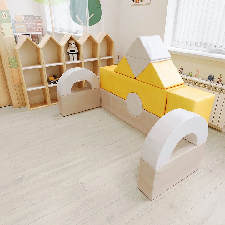 Объемные фигуры смогут заменить некоторые элементы мебели. Сюжетно-ролевые игры станут настоящим эксклюзивом в организации детского активного отдыха. С помощью модулей у ребенка формируется вестибулярный аппарат, укрепляется мышечная система. Самые маленькие садятся верхом, и чувствую, как держит координацию тело, удерживают равновесие. Хват и передвигание предметов разрабатывает крупную моторику ребенка.