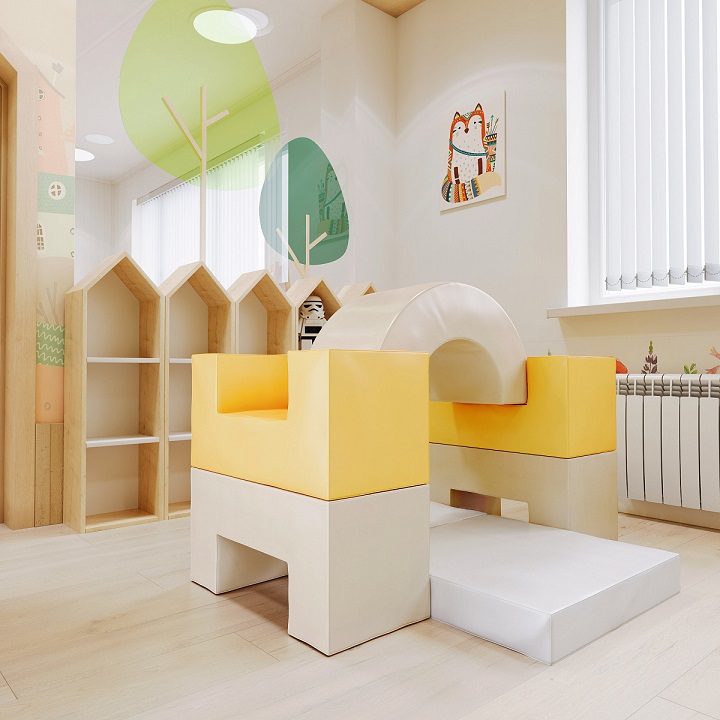 Красивейший игровой комплекс «Дуга» из мягких деталей очаровывает и просто незаменим для детских спортивных залов, релаксационных кабинетов и игровых комнат для детей. Игра будет интересной и поднимет настроение у ребенка, можно одновременно играть и в игрушки и в спортивном комплексе. Фантазия детей безграничная и из этих элементов они придумают такое, что вам даже и в голову не придет. Мягкий комплекс «Дуга» представляет собой набор геометрических фигур увеличенного размера, позволяющий ребенку развиваться и обучаться.