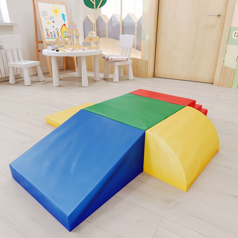 Игровой набор Подиум состоит из 4 мягких модулей. Хорошо выдерживает активную нагрузку, быстро восстанавливает свою первоначальную форму и не требует сложного гигиенического ухода. Незаменимый набор блоков для организации детского досуга и спортивных игр!Подходит для домашнего использования и это отличный выбор для детского учреждения или детской комнаты в любом развивающем центре. Может быть как отдельной игровой зоной, либо в сочетании с другими игровыми и спортивными комплексами от ROMANA.