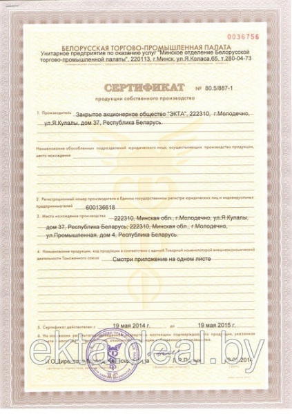 ЗАО ЭКТА, РБ, г. Молодечно ул. Я. Купалы, 37 |