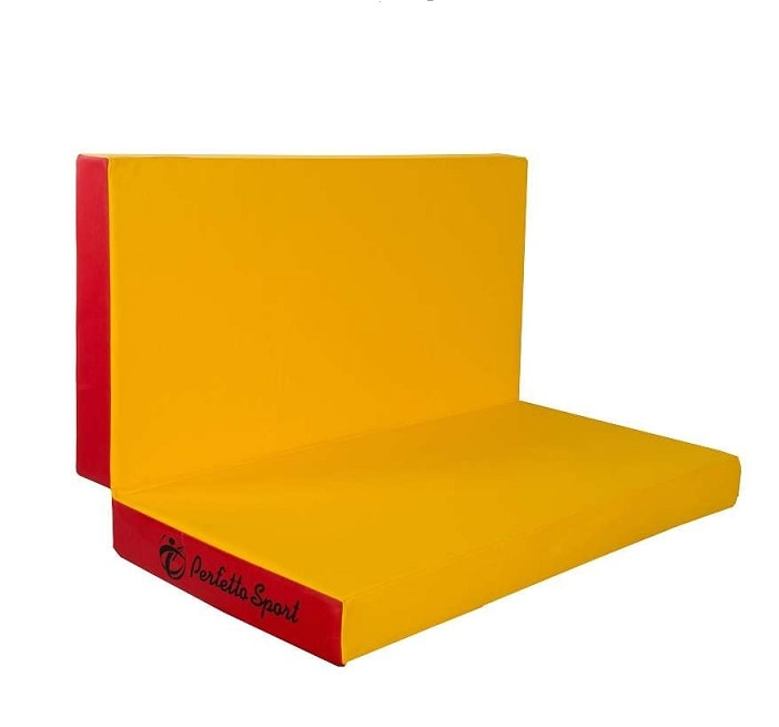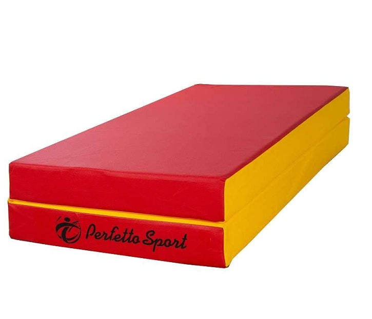Складной мат № 3 Perfetto Sport состоит из двух прочно соединенных между собой блоков, который в сложенном виде занимает сравнительно небольшое пространство. Такие маты удобно использовать в небольших спортивных залах, а также в домашних условиях. В качестве наполнителя в гимнастических матах чаще используется поролон. Для детей плотность мата должна быть не меньше 12-14 кг на кв. м., а высота от 10 см. Мат для ребенка необходим тогда, когда он выполняет спортивные упражнения или просто играет в свое удовольствие на спортивном комплексе. Предупреждает не только от возможных ссадин, но и серьезных ушибов, травм.