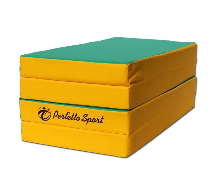 Складной зелено-желтый мат № 5 Perfetto Sport удобен для детей и взрослых. Для занятия спортом достаточно разложить мат, который для удобства хранения складывается в 3 местах.