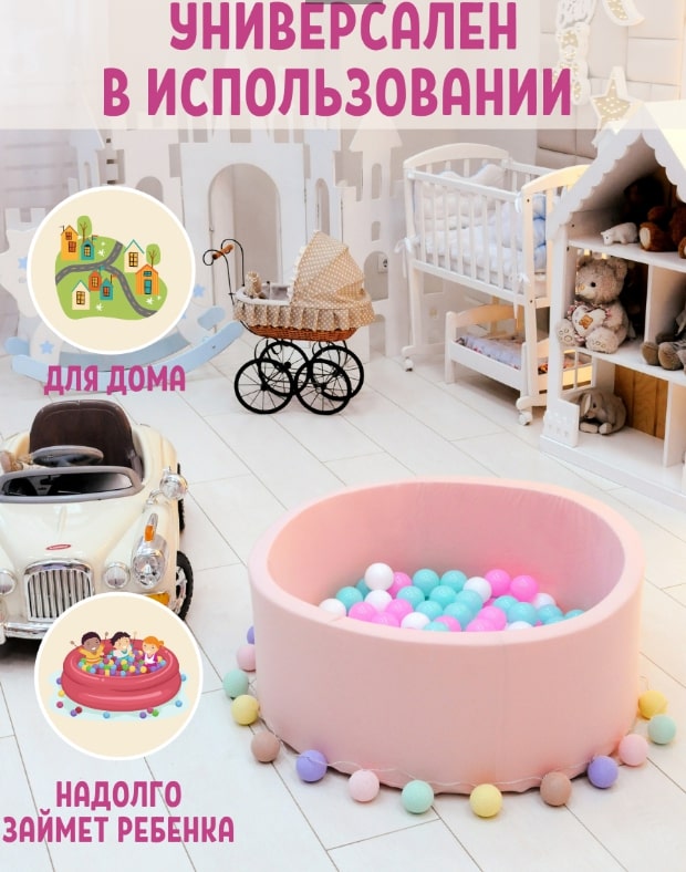 Сухой бассейн — простая и увлекательная забава для юных непосед. Он может использоваться как игровая зона или манеж, но чаще он наполняется шариками для подвижных игр и для отдыха. Сухой бассейн мягкий и безопасный, быстро и удобно чистится.В комплекте 150 шариков