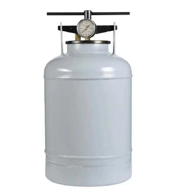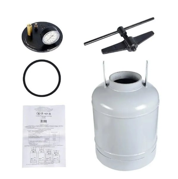 Домашний автоклав для консервации продуктов на 18 литров представляет собой плотно закрывающийся баллон. Автоклав предназначен для стерилизации (тепловой обработки при температуре свыше 100 С) пищевых продуктов, которые расфасованы в стеклянные или жестяные банки. Создаваемое внутри автоклава избыточное давление позволяет получить температуру паровоздушной смеси более 100С и препятствует разгерметизации банок.Температура и продолжительность тепловой обработки устанавливается в зависимости от вида и состава продуктов, типа и размеров банок и прочих условий.Он способен вместить в себя 14 банок по 0,5 литров или 5 литровых банок.