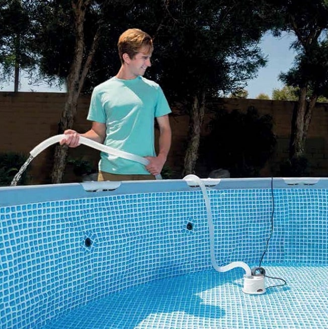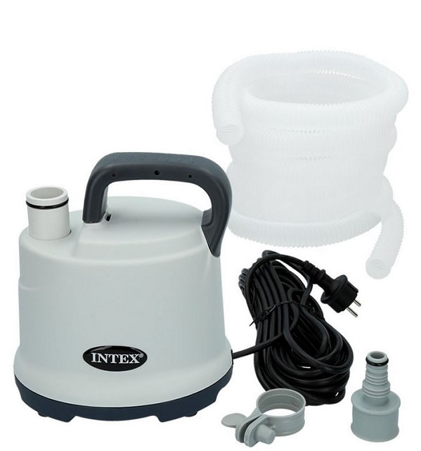 В основном все бассейны оснащены отверстием для слива воды, к которому подсоединяется шланг, и вода начинает сливаться. В большинстве случаев сливной клапан находится в несколько сантиметрах выше дна бассейна, что усложняет полный слив воды. Для решения этой проблемы компании Интекс предлагает дренажный насос 28606 (Pool Drain Pump), который можно опустить в воду на глубину до 122 см