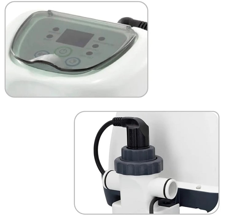 Интекс 26662 имеет удобную панель управления с возможностью блокировки, таймер для автоматической работы (6-10 ч), электролизер с регулируемой автоматической самоочищающейся системой.