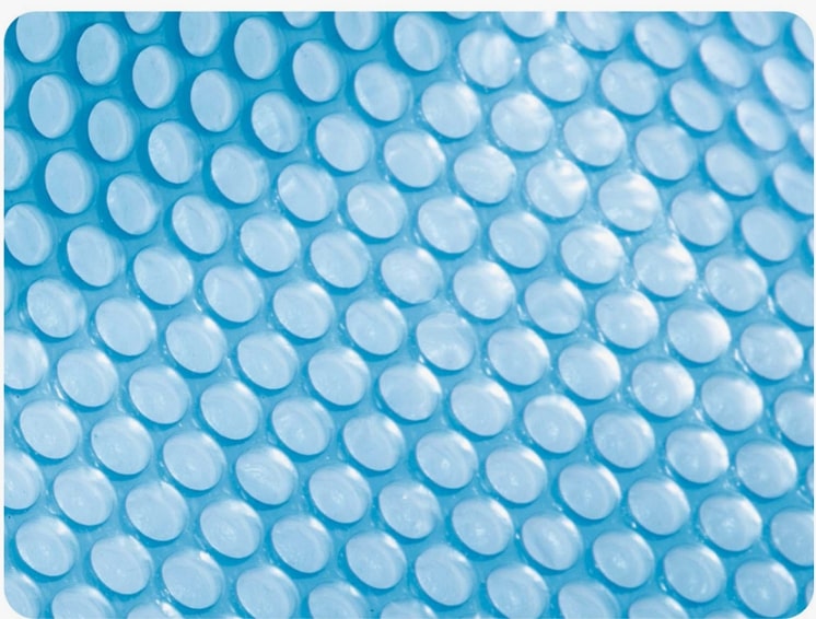 - Благодаря использованию прозрачной пленки (голубоватого оттенка) и ячеистой структуре, не препятствует прохождению солнечных лучей и позволяет воде прогреться быстрее