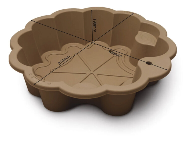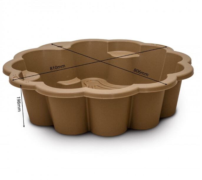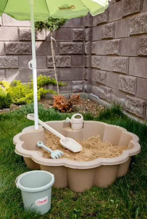 - Дизайн: Песочница выполнена в форме цветка с двумя удобными местами для сидения, что позволяет детям играть вместе.