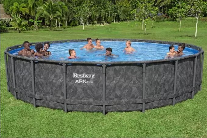 Сборный круглый каркасный бассейн Bestway 561KC с песочным фильтрующим насосом. Установка круглый год: бассейны APX 365 — первые наземные бассейны на рынке, оснащенные технологией защиты от атмосферных воздействий Polar Shield. Вы можете обустроить бассейны летом для семейного купания и оставить их зимой — нет необходимости хранить их вне сезона! Polar Shield защищает покрытие бассейна от вредных погодных воздействий даже при низких температурах.Прочная конструкция: бассейн изготовлен из коррозионностойкой оцинкованной стали и рассчитан на максимальную долговечность. Каркас изготовлен из 100% оцинкованной стали, что предотвращает появление ржавчины и атмосферных повреждений. Благодаря соединениям ClickConnect бассейн легко настроить — не требуются дополнительные инструменты или аксессуары. Т-образные соединители предотвращают контакт металла с металлом, повышая устойчивость к ржавчине. Прочная облицовка бассейна TriTech изготовлена из прочного трехслойного материала