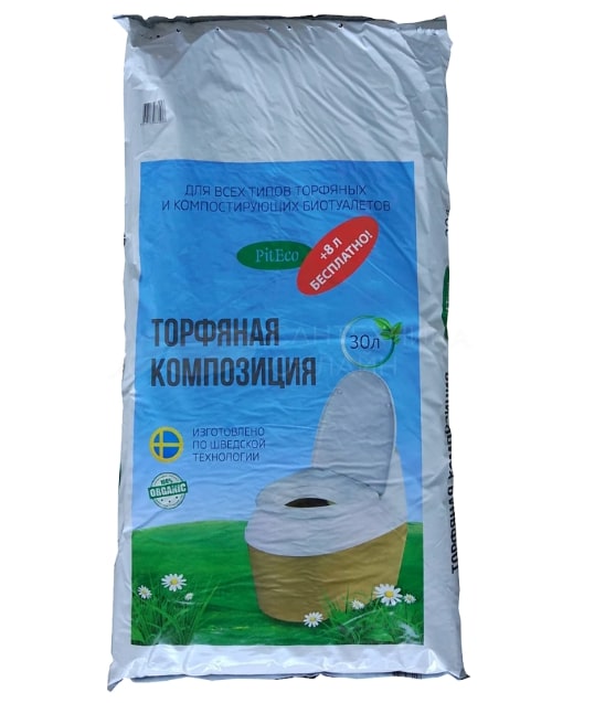 Торфяная композиция Piteco для биотуалета 30л (+8л бесплатно) Торфяная смесь используется во всех видах торфяных и компостных туалетов. Специально разработана для биотуалетаов PitEco. Смесь состоит из сухого торфа, опилок и насыщена микроорганизмами. Препарат природного происхождения, предназначен для эффективной работы торфяного биотуалета и ускоренного торфофекального компостирования. Основные характеристики: Объем: 30+8 л Применение: торфяные туалеты всех типов Состав: верховой торф низкой степени разложения сфагновой группы Разрыхлитель: древесные опилки хвойных пород Раскислитель: мука доломитовая Содержит ферменты и микроорганизмы Высокие показатели влагоёмкости Большая поглотительная способность.Основные характеристики: