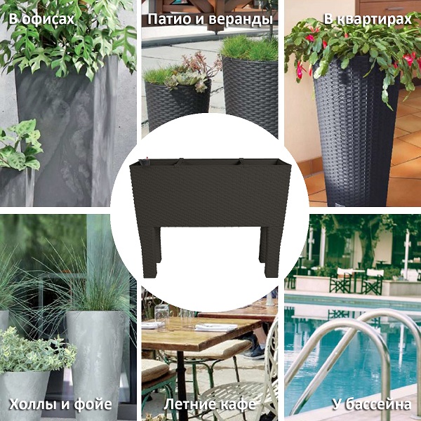 Горшок, благодаря используемому для производства высококачественному пластику, устойчив к неблагоприятным погодным условиям. Красиво продемонстрирует как вьющиеся, так и классические цветочные композиции.