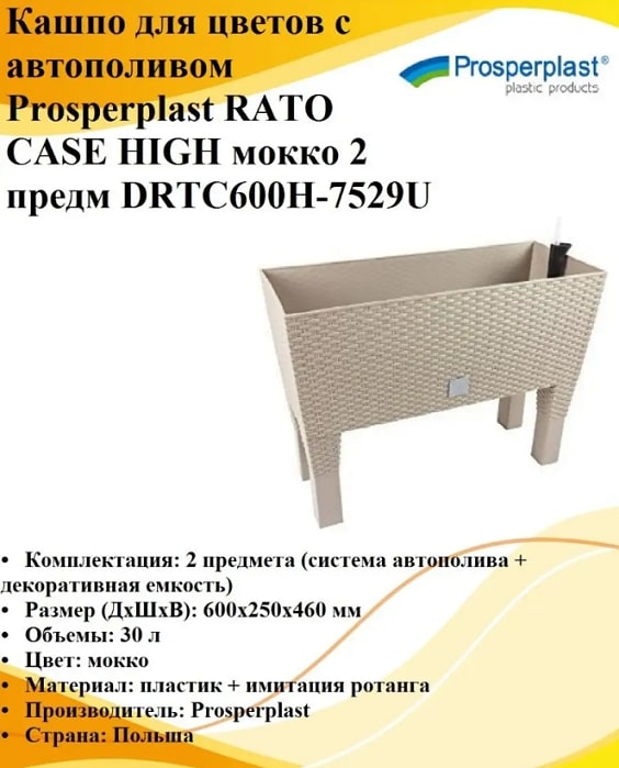 Кашпо с автополивом RATO CASE High DRTC600H-7529U мокко 2 предмета 30л