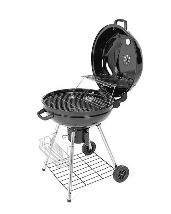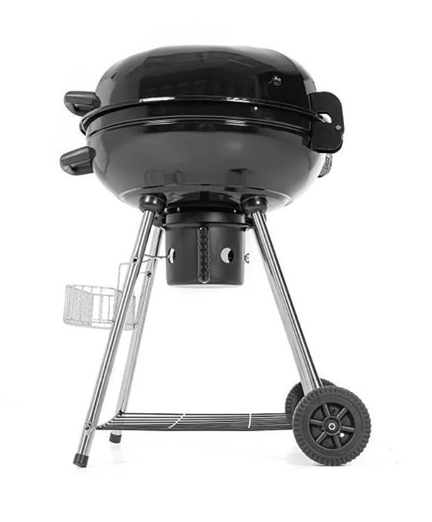 Жаровня гриля располагается на оптимальной высоте на ножках, на двух из которых есть колеса, облегчающие его перемещение.