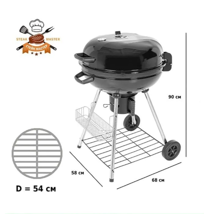 Диаметр хромированной решетки для приготовления пищи 54 см.