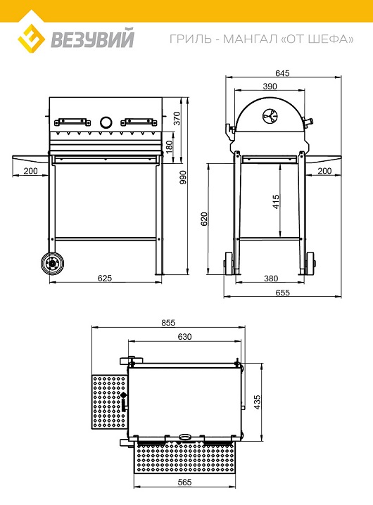 По верхнему краю длинных сторон приварены рёбра жёсткости в виде квадратного металлического прутка 10 мм. Они предупреждают деформацию стенок мангала. Сюда можно установить чугунные решётки или плиты для мангала Везувий.
