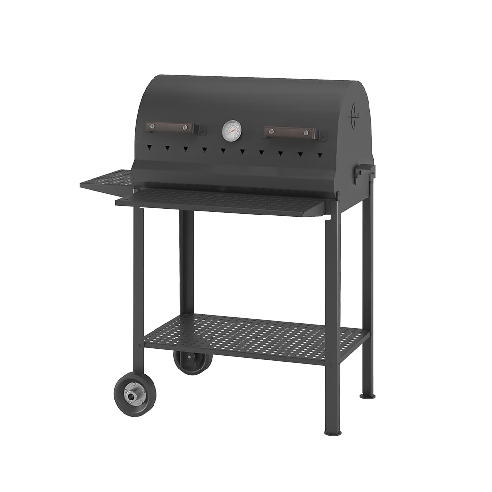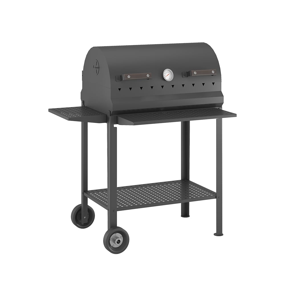 Ручки на крышке – с деревянными накладками. Между ручками в крышку встроен термометр, рассчитанный на замер температуры до 550°C или 1000°F.