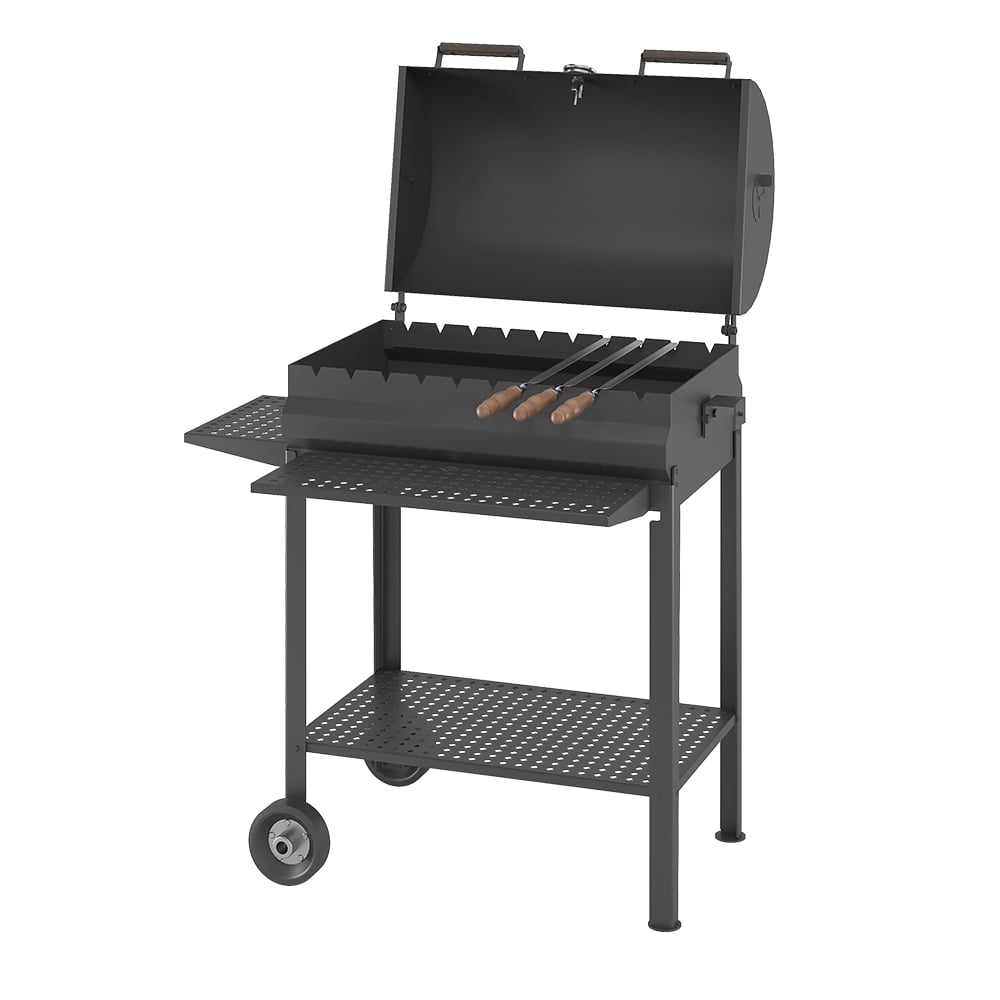 Для перемещения гриль-мангала по участку на двух ножках есть колёса, облегчающие движение.