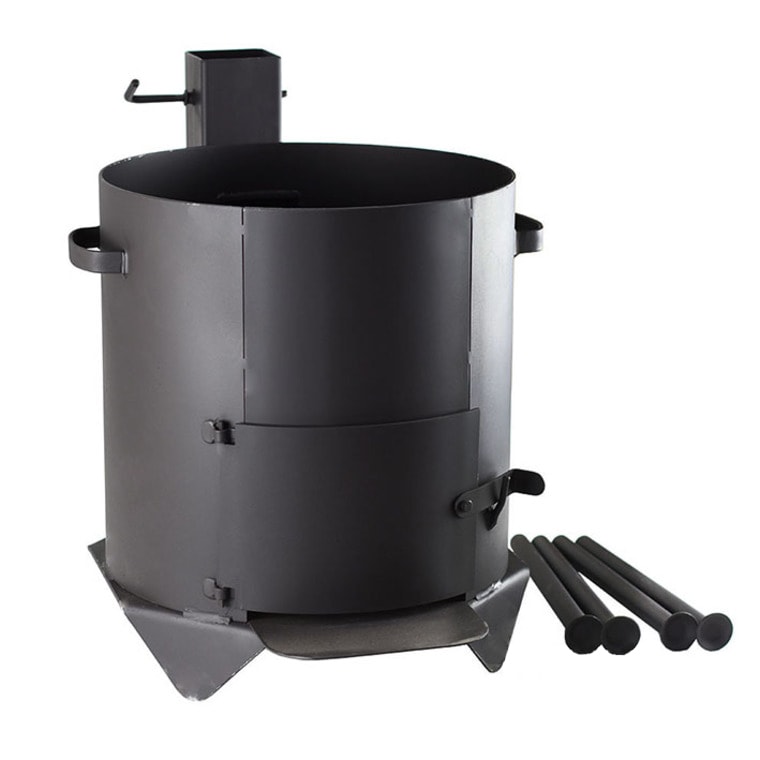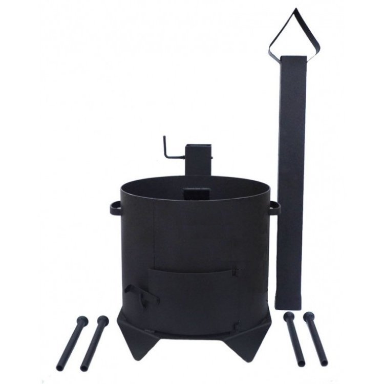 Универсальный комплект печь с дверкой и дымоходом + казан объемом на 22 литра. Он прекрасно подойдет для Вашего семейного досуга на природе, либо для загородного или дачного дома, чтобы приготовление блюд стало еще более простым и удобным.