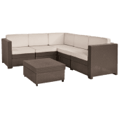 Каркас: Сталь Материал: Искусственный ротанг Столешница: Закаленное стекло Угол (2шт.): W72xD72xH63 см Середина (4 шт.): W62xD72xH63 см Стол: L62xW62xH32 см |