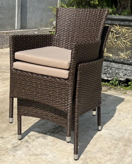 Обеденный комплект мебели из искусственного ротанга. В составе комплекта стол и 4 кресла с подушками.Лаконичный и строгий дизайн обеденной группы подойдет для любого интерьера квартиры, дома или веранды. Искусственный ротанг высокого качества не требует особого ухода, а так же не подвержен разрушительному влиянию влаги, высокой и низкой температур и УФ-лучей. Стулья без подлокотников с подушками на сидении.