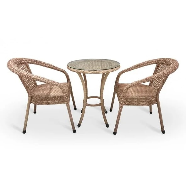 Плетеная мебель из ротанга - это находка для вашего загородного дома или дачи!Кофейный комплект DECO 2 из искусственного ротанга на 2 персоны. Не боится влаги, прямых солнечных лучей, мороза. Не требует особого ухода. Легко моется. Рекомендованная температура эксплуатации -16/+50. Нить плоская. В комплекте: стол д. 60 см, 2 кресла. Столешница - каленое стекло 6 мм. Оптимальные размеры комплекта и полноценный обеденный стол совмещают в себе место для отдыха и для трапезы.