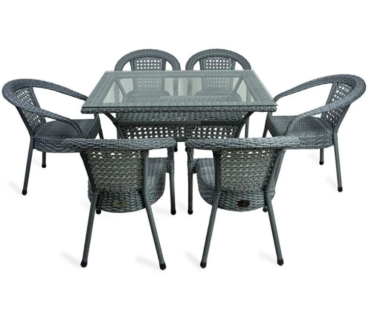 Стол садовый прямоугольный 6 мест DECO, к комплекту DEKO. Прочный стальной каркас, окрашенный порошковым методом. Нить плоская. Экоротанг высшего качества. Изделие не боится влаги, прямых солнечных лучей, мороза. Температура эксплуатации от -16 до + 50. Легко моется. Не требует особого ухода. Гарантия 2 года.Характеристики: