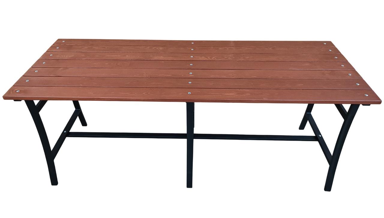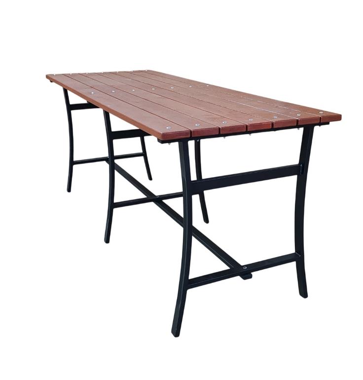 Долговечная столешница: Рейки из обработанного дерева не боятся перепадов температур и влажности. Приятный оттенок махагон добавляет тепла и эстетики вашему участку.