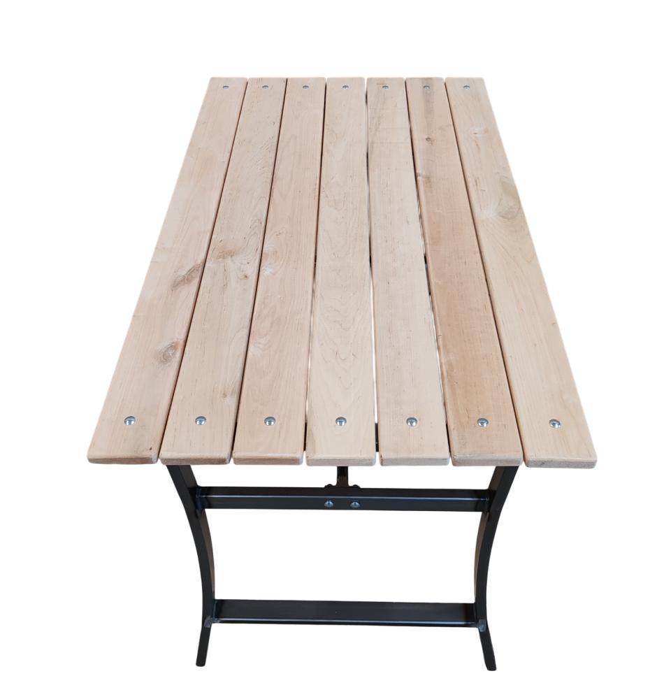 Стол садовый для дачи УНО – это надежный и удобный стол для дачи для отдыха на свежем воздухе в вашем саду. Стол выполнен из толстостенной стали, покрыт порошковой краской, которая обеспечивает ему долгий срок службы. Поверхность стола изготовлена из дерева с влагостойкой пропиткой в цвете махагон, которая приятна на ощупь и выглядит эстетично. Цвет каркаса и оттенок дерева гармонично сочетаются между собой, создавая универсальный вид садового стола. Столешница легко крепится к каркасу болтами и гайками.
