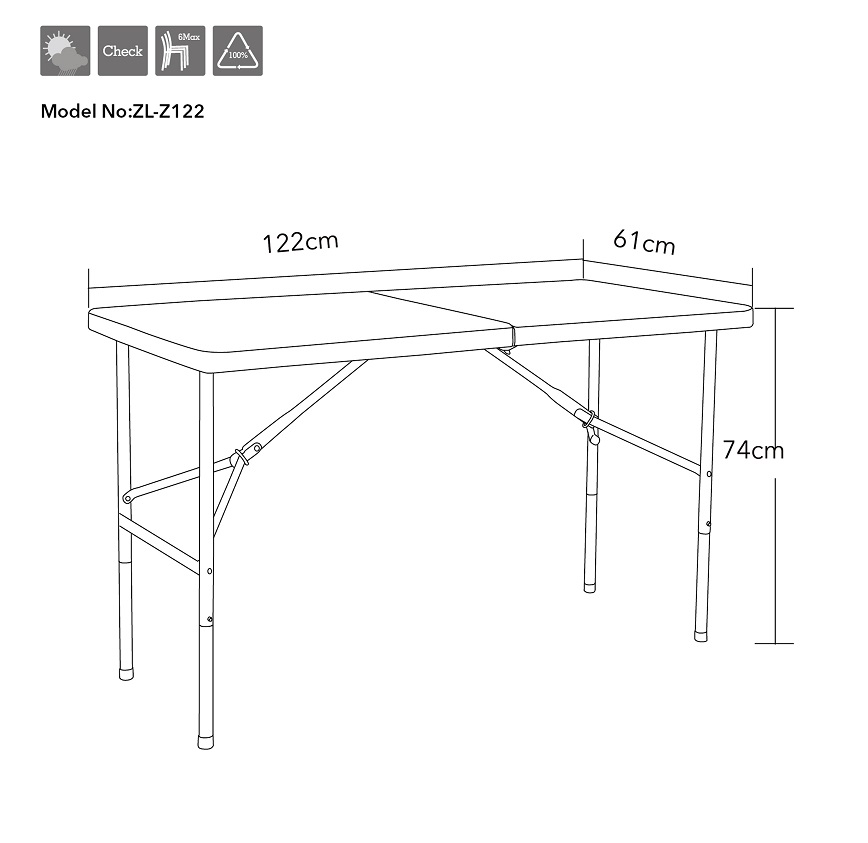 Стол складной пластиковый Angioletto представляет собой относительно компактное изделие, которое легко складывается и раскладывается.За столом длиной 122см., шириной 60 см. и высотой 74 см. могут разместитmся с комфортом до 4 человек. Стол подойдет как для приема пищи, так и для проведения досуга. Стол изготавливается из современных долговечных и износостойких материалов и представляет из себя крепкую пластиковую столешницу, неподверженную воздействию влаги, белого цвета, толщиной 3,5 см., на металлическом каркасе, выполненном из гальванизированной стали с толщиной ножки 27 мм. Стол имеет простой и надежный механизм складывания.