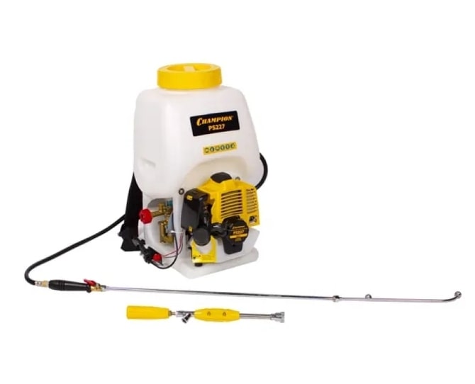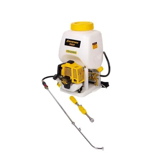 Бензиновый опрыскиватель Champion PS227 подойдет для борьбы с насекомыми-вредителями, болезнями и сорняками, для равномерной подкормки и удобрения растений. Для увлажнения почвы и бережного орошения зелени в засушливый период. Также садовый распылитель можно применять в дезинфекции помещений, для мытья машин и зданий.Работает опрыскиватель от бензина. Объем двигателя - 22 см, а топливного бака - 0.5 литра. Модель имеет воздушное охлаждение двигателя, регулятор давления жидкости, диафрагменный аккумулятор и вместительный полупрозрачный бак для распыляющих веществ на 16 литров. Для удобства наполнения предусмотрена широкая горловина бака. Одно их преимуществ - многофункциональность. Опрыскиватель оснащен двумя видами распыления: струйная трубка-удлинителя и пистолет-распылитель. Трубка-удлинитель позволяет дотягиваться до труднодоступных мест и увеличивает площадь распыления. Дальность разбрызгивания до 2,5 метров.