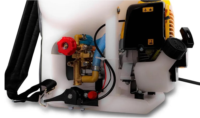 Бензиновый опрыскиватель Champion PS227 обладает широким основанием, которое обеспечивает устойчивость конструкции на горизонтальных поверхностях. Опрыскиватель оборудован наплечным ремнем, благодаря чему носка инструмента станет легче и удобнее. Два ранцевых ремня с комфортными мягкими накладками избавляют от необходимости постоянно передвигать садовый распылитель с места на место. Имеет малый вес по сравнению с другими аналогами.