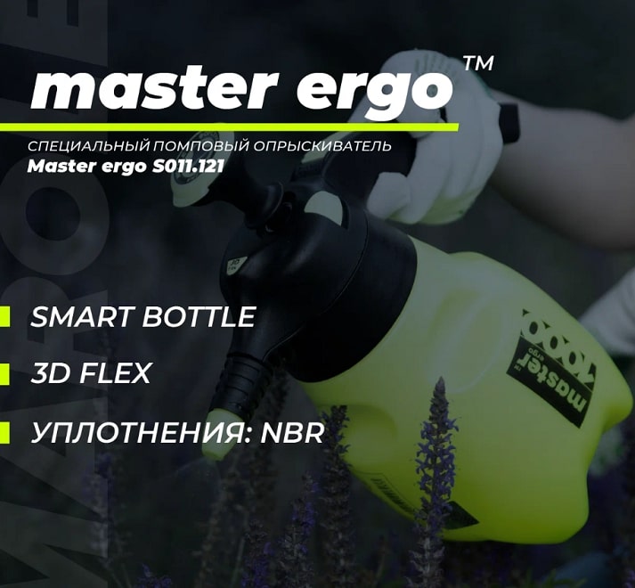 Опрыскиватель Master Ergo создан специально для садоводов-энтузиастов, а его инновационные решения также ценятся профессиональными пользователями. Подключение штанги обеспечивает расширенный рабочий диапазон и повышенную безопасность в использовании. Эргономичный дизайн, гладкие формы и умные функции делают этот продукт исключительно удобным и эффективным в работе, чем мы с гордостью воспользуемся.