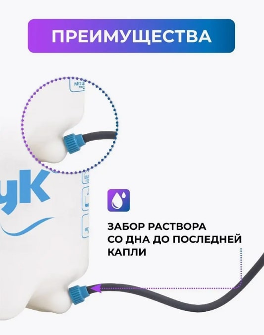 Нижний забор жидкости, позволяющий использовать весь объём — без остатка.