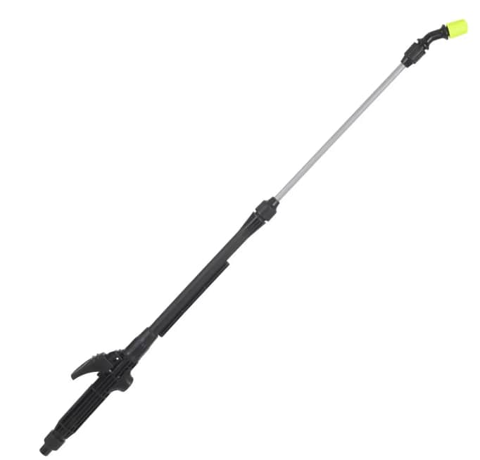 Телескопический брандспойт можно удлинить до 970 мм, что позволяет производить обработку на различной высоте и добраться до труднодоступных мест. Благодаря фиксатору на брандспойте можно работать без удерживания кнопки. Регулировка струи дает возможность выбирать подходящий режим распыления - от сильной струи до легкого тумана. Для удобства работы и переноски предусмотрен наплечный ремень.