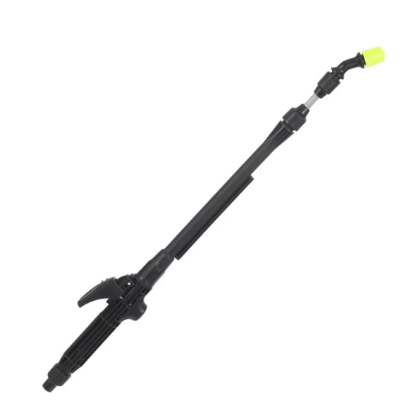 Телескопический брандспойт можно удлинить до 970 мм, что позволяет производить обработку на различной высоте и добраться до труднодоступных мест. Благодаря фиксатору на брандспойте можно работать без удерживания кнопки. Регулировка струи дает возможность выбирать подходящий режим распыления - от сильной струи до легкого тумана. Для удобства работы и переноски предусмотрен наплечный ремень.