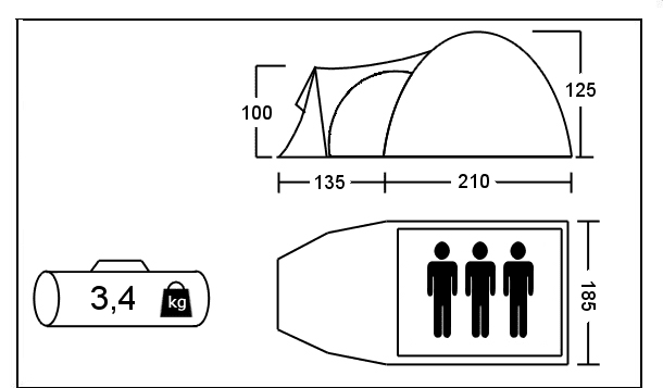 - Размер в собранном состоянии: 135+210х185х125/110 см