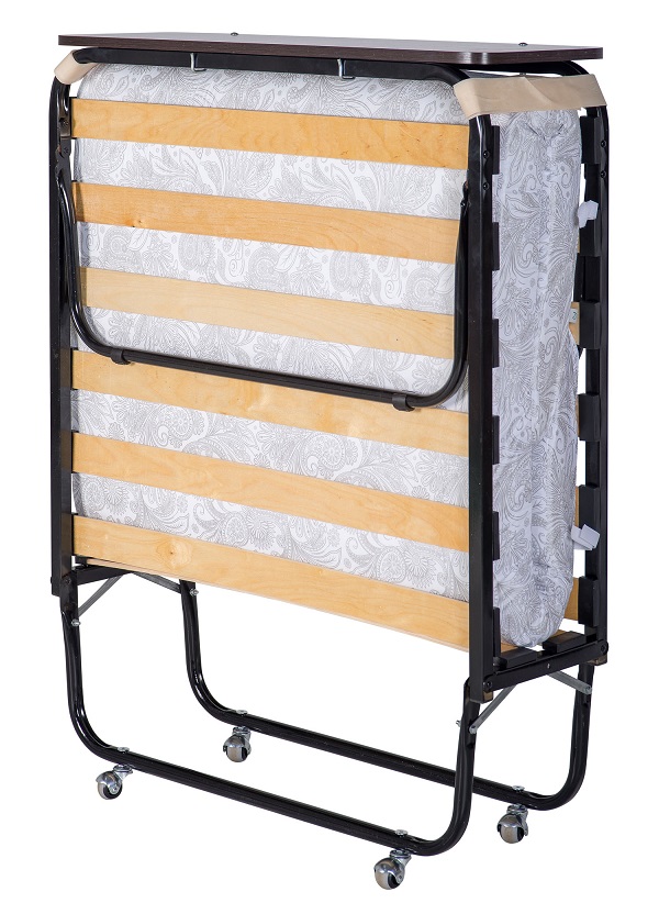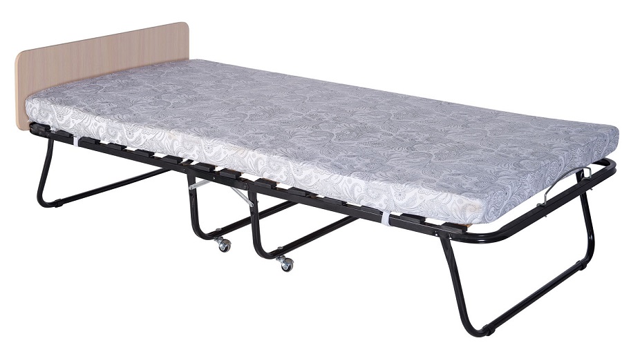 Раскладушка «Отель 900 Премиум» с изголовьем подойдет под любой современный интерьер и встанет в любом небольшом месте, неважно в комнате, лоджии или гостинице. Стальной каркас оснащен колесиками, березовыми ламелями и дополняется матрасом с липучками, которые не позволят ему съехать во время сна с основания. Для дополнительно надежной фиксации матраса в одном положении, у раскладной кровати имеется изножье.В сложенном состоянии изделие настолько компактно, что вы легко можете придвинуть его к стене или убрать в кладовку.