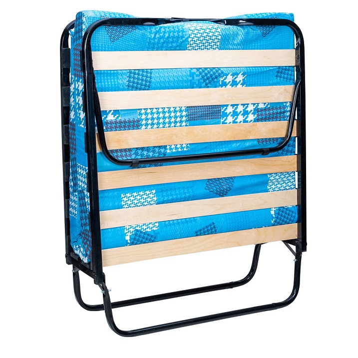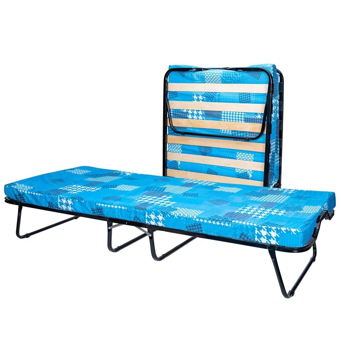 Отличительной чертой данной модели является легкость, прочность и компактность. Каркас кровати изготовлен из стальной трубы диаметром 25 мм и толщиной 1,2 мм. Основание ортопедическое - деревянные ламели в количестве 12 штук. Максимальная распределенная нагрузка - 120 кг.