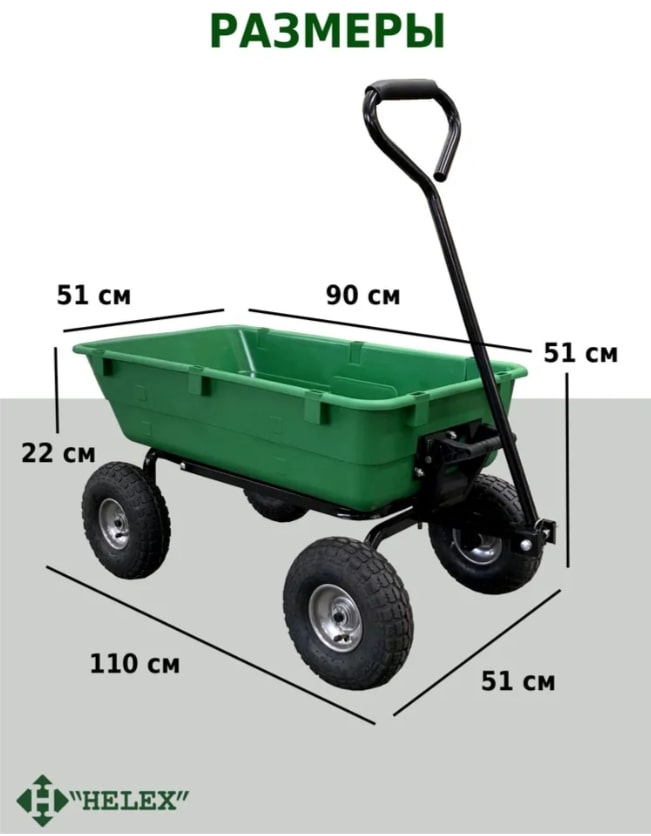 - Тип механизма разгрузки: Самосвал (ручной, разгрузка одной рукой)