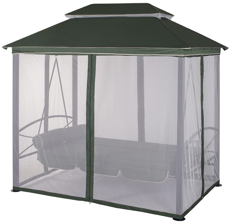 Почти двухметровый диван беседки позволяет с комфортом разместить компанию из четырех взрослых, при этом, максимальная нагрузка составляет 300 кг Тент защитит от небольшого дождя, а благодаря вентиляции, гарантирована хорошая циркуляция воздуха при закрытии стенок; Антимоскитная сетка защищает от насекомых и может быть расстегнута с каждой из четырех сторон и крепится на стойках подхватами; Мягкие подушки обеспечивают дополнительный комфорт в беседке; Спинка дивана раскладываться в положение кровати, создавая полноценное спальное место, достаточное для размещения двух отдыхающих.