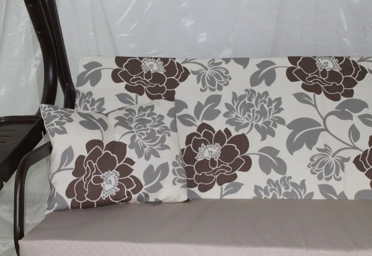 Мягкий элемент: ткань с напечатанным рисунком, наполнитель — листовой поролон толщиной 80 мм (сиденья) и поролон толщиной 20 мм (боковины)