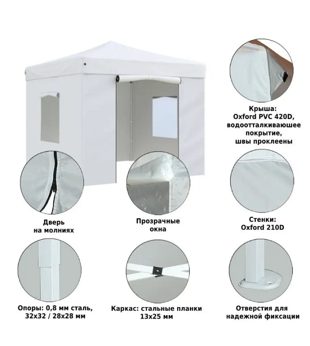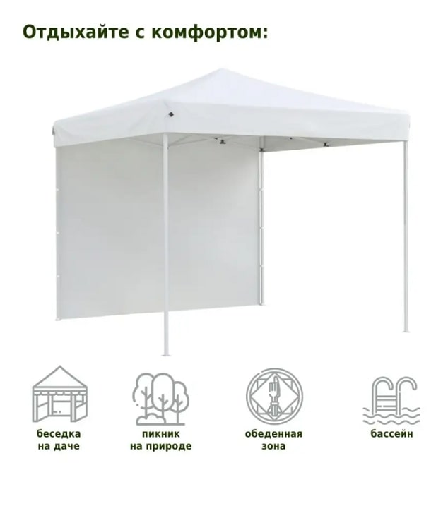 ВАЖНО! Все тенты и шатры предназначены для частного использования - на даче или приусадебном участке. Не эксплуатировать при сильных ветрах и ливнях.