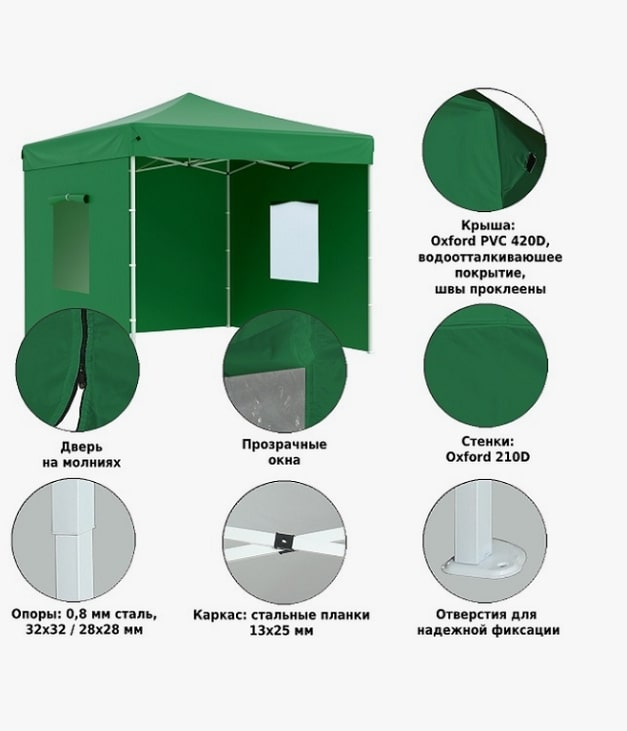ВАЖНО! Все тенты и шатры предназначены для частного использования - на даче или приусадебном участке. Не эксплуатировать при сильных ветрах и ливнях.