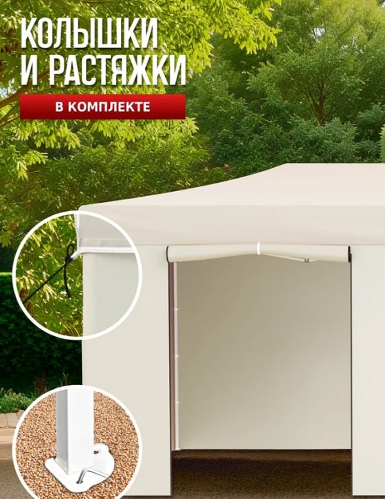 ВАЖНО! Все тенты и шатры предназначены для частного использования - на даче или приусадебном участке. Не эксплуатировать при сильных ветрах и ливнях.