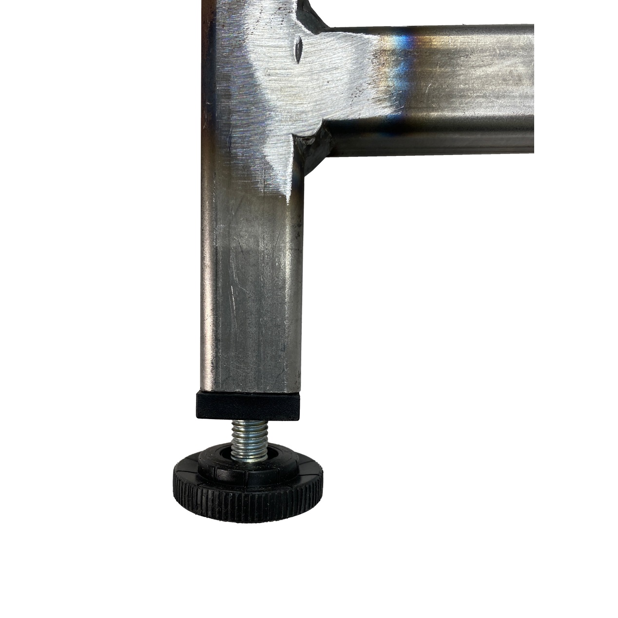 Основания выполнены из профильной трубы 20х20 мм. Торцы сверху закрыты пластиковыми заглушками для герметичности и защиты от влаги.