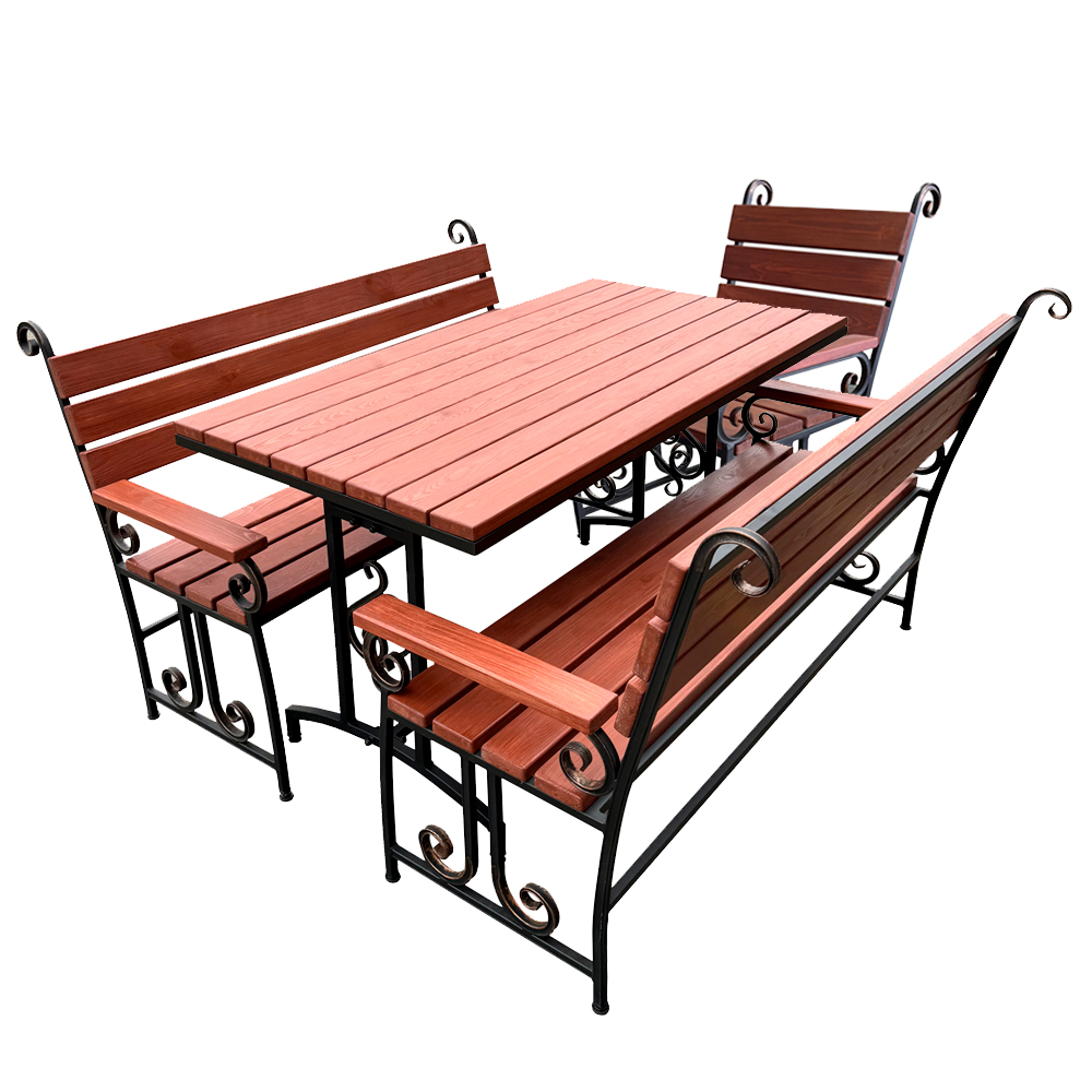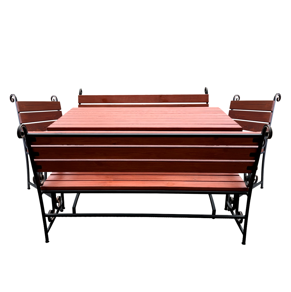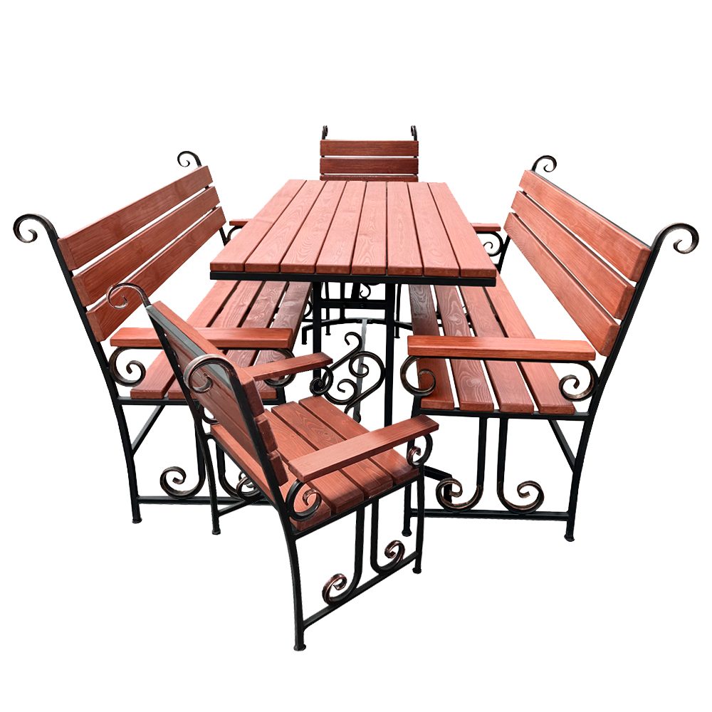 - Комплектация: 2 кресла, 2 скамьи, стол