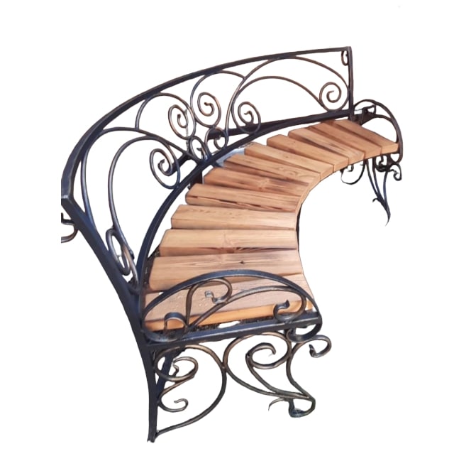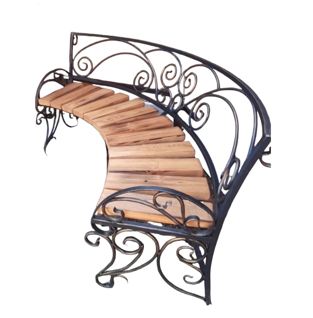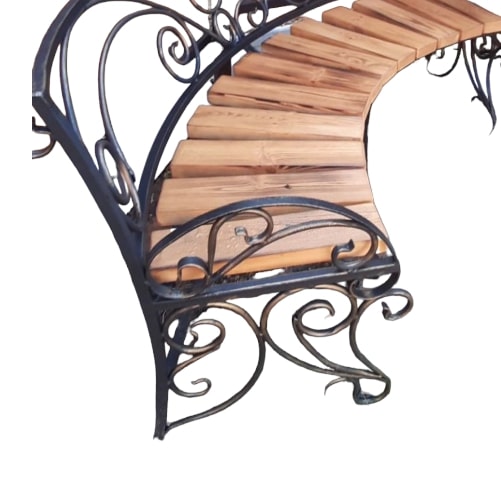 Скамейка полукруглая со спинкой с элементами ковки для благоустройства придомовой территории, скверов, парков, детских площадок. Скамейка имеет устойчивое основание с декором из элементов ковки.Великолепная скамейка из металла и дерева предаст изящность и дополнит Ваш уют. Такая скамейка может стать не только прекрасным декором для паркового ландшафта, но и любимым местом отдыха.